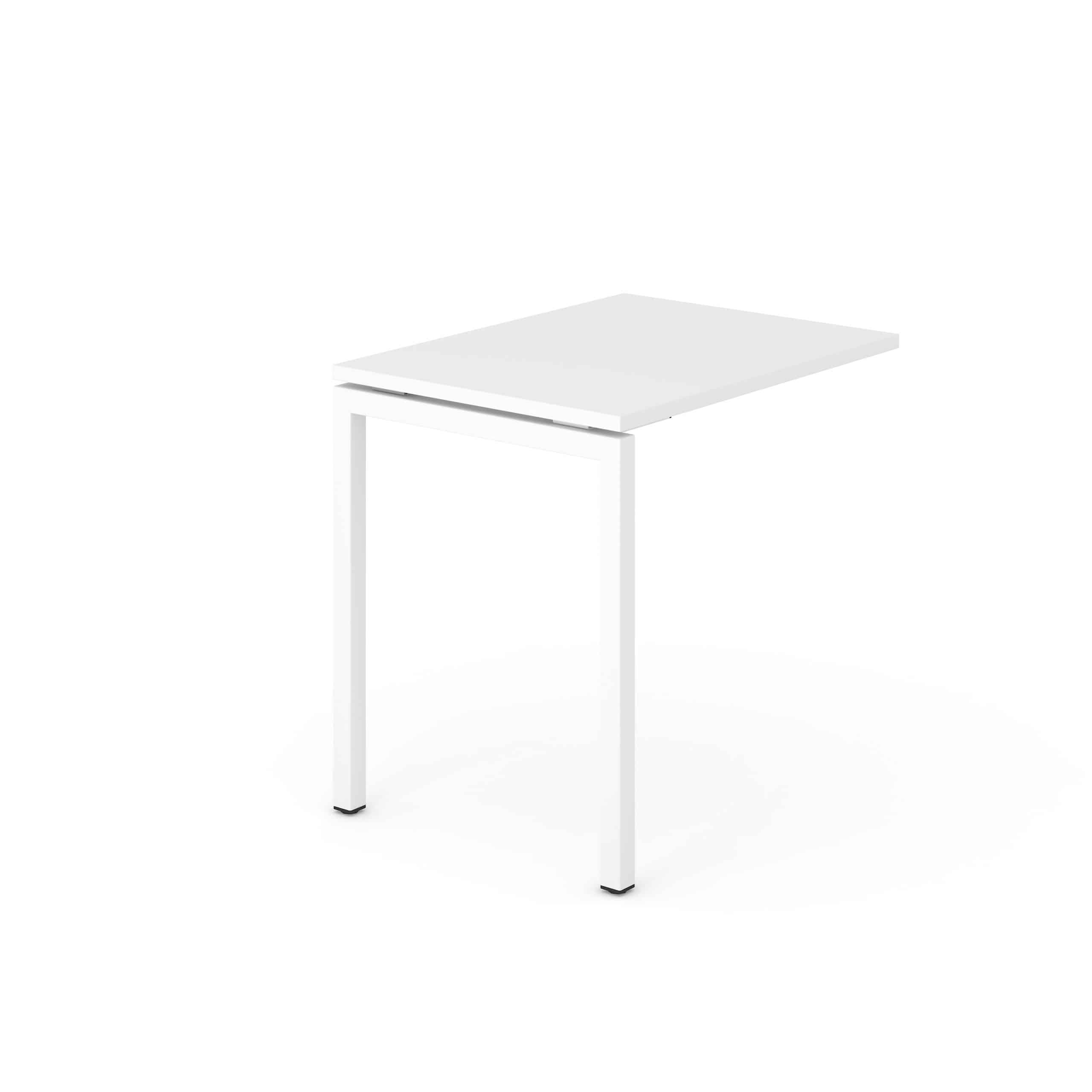 Le retour ANNAKA est idéal pour agrandir votre espace de travail. Il peut être placé à gauche ou à droite. Plateau épaisseur 25mm avec chants ABS de 2 mm. Espace de 10 mm entre le plateau et le piètement. Double poutre structurelle 40x20mm, avec plaques de métal soudées pour la fixation des pieds. Piètement métallique soudé 40X40mm revêtement à la poudre epoxy, verrins de réglages en plastique avec nivellement de 10mm.