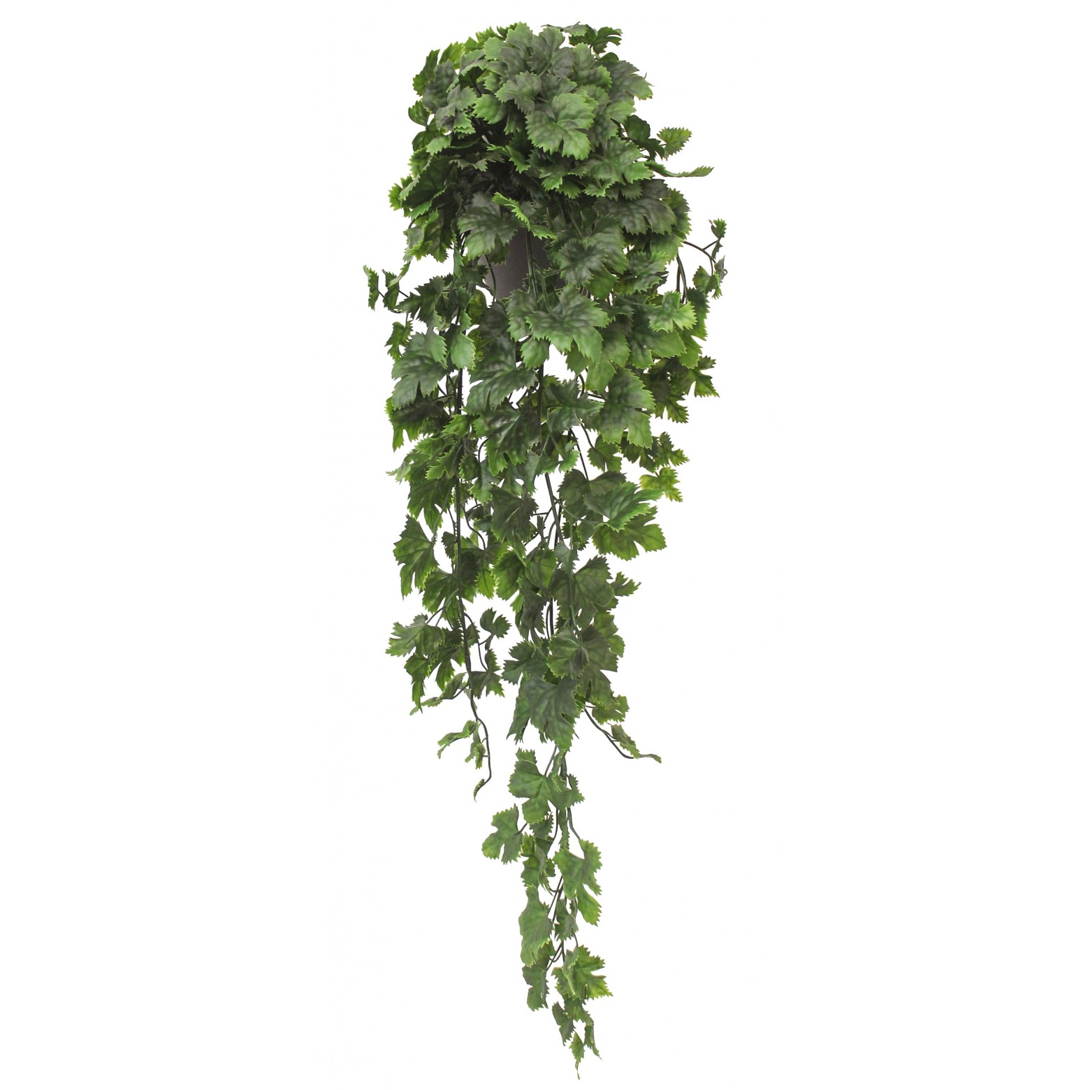 Jolie chute de vigne artificielle de 75 cm de long incluant le pot. Envergure d’environ 30 cm. Feuillage de bonne densité vert nuancé thermoformé en polyéthylène traité anti-UV. Joli rendu avec un bel effet retombant. Idéal en remplacement du classique lierre de balcon.