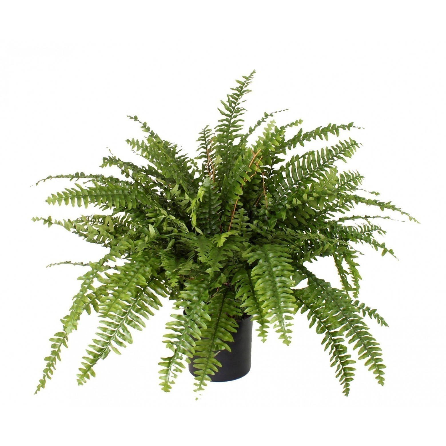 Cette fougère artificielle géante boston mesure 80 cm de haut pour 110 cm de large environ modulable grâce au feuillage armé. Grandes feuilles vertes découpées en polyester, avec quelques minuscules fleurs. Livrée en pot PVC de 15 cm de haut pour 16 cm de diamètre.