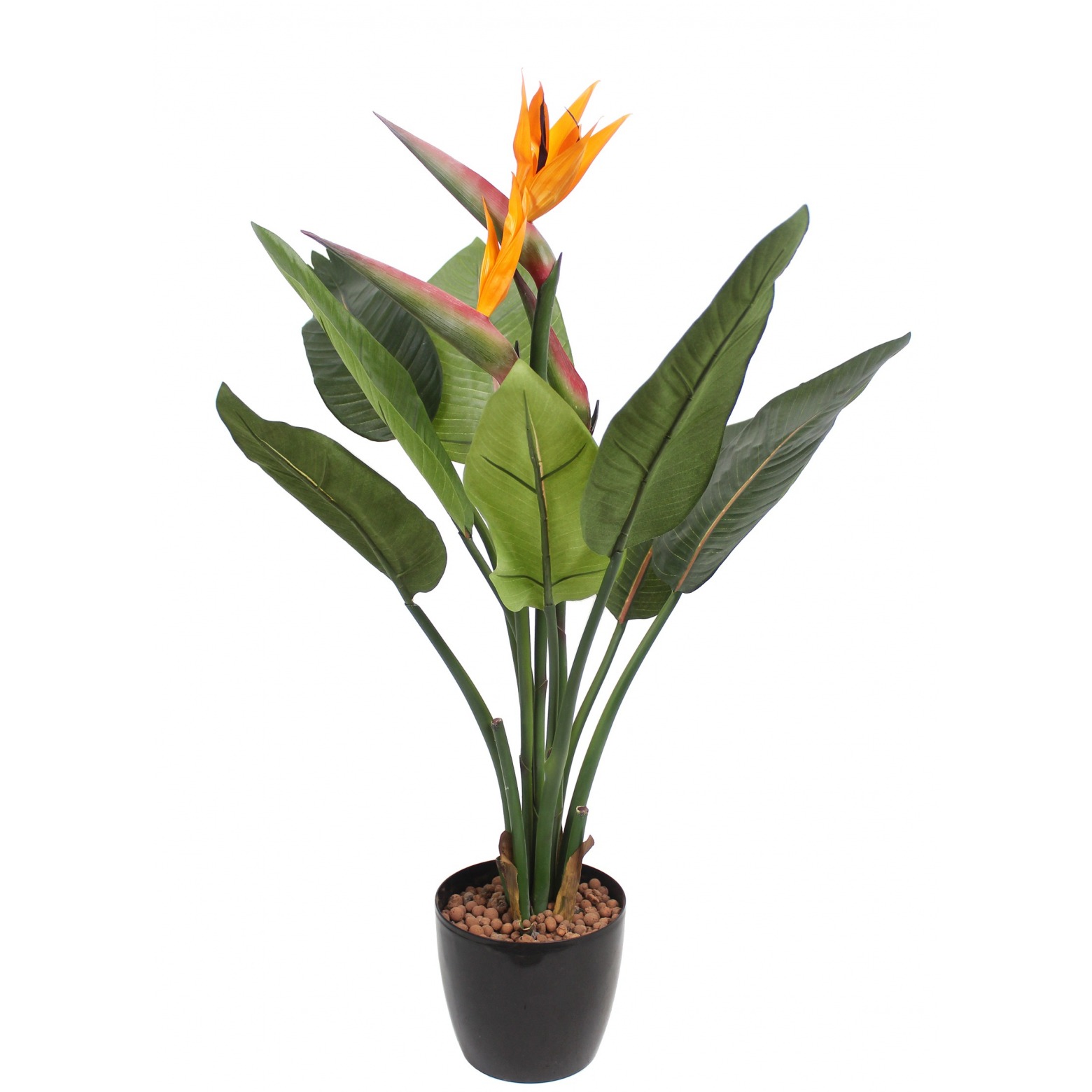 Beaucoup d’exotisme pour ce strelitzia artificiel de 95 cm de haut pour 40 cm de large. Doté de feuilles en tergal, de 2 fleurs et d’un bouton floral en tergal enduit finement reproduits. Tiges en PVC, à mémoire de forme ce qui permet de travailler la silhouette de la plante. Livré en pot PVC. Traitée anti UV.
