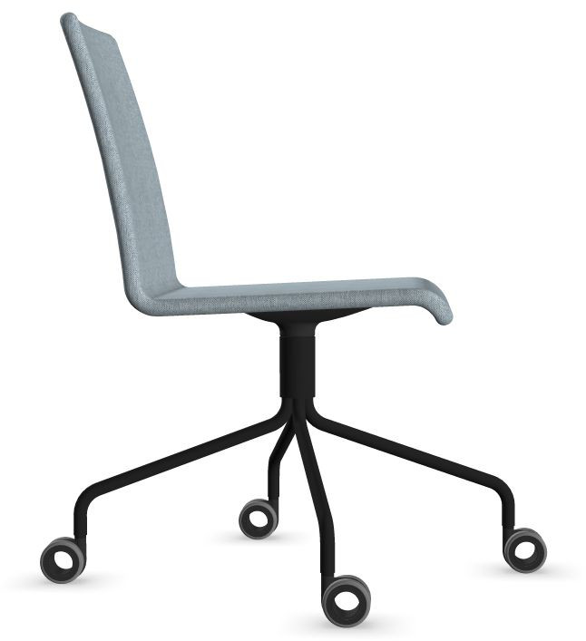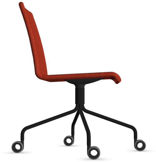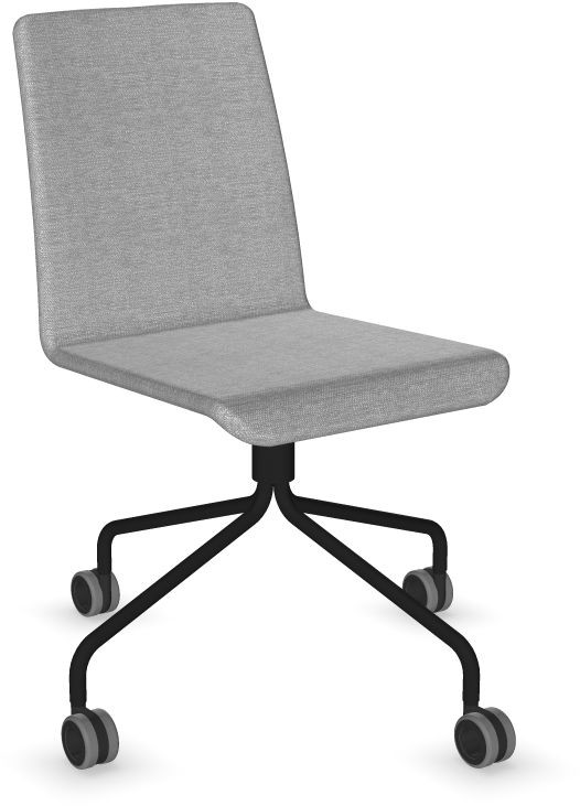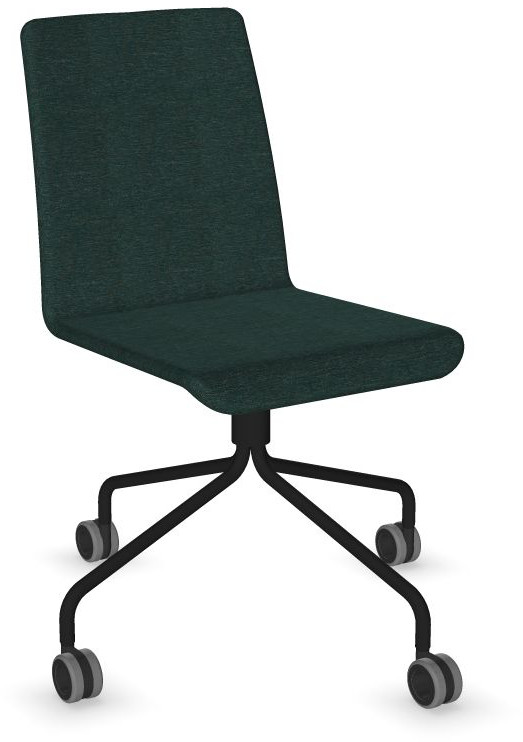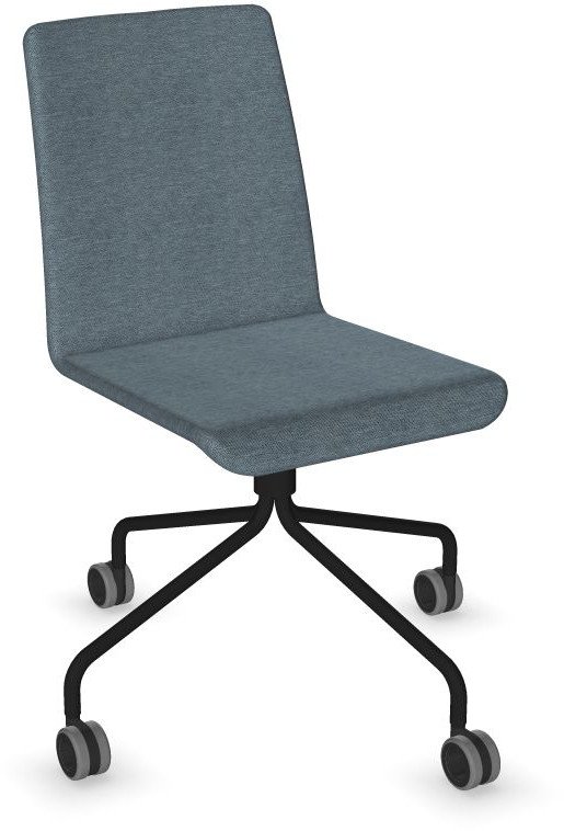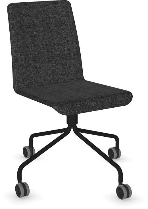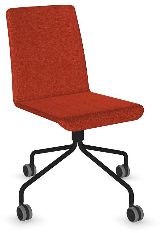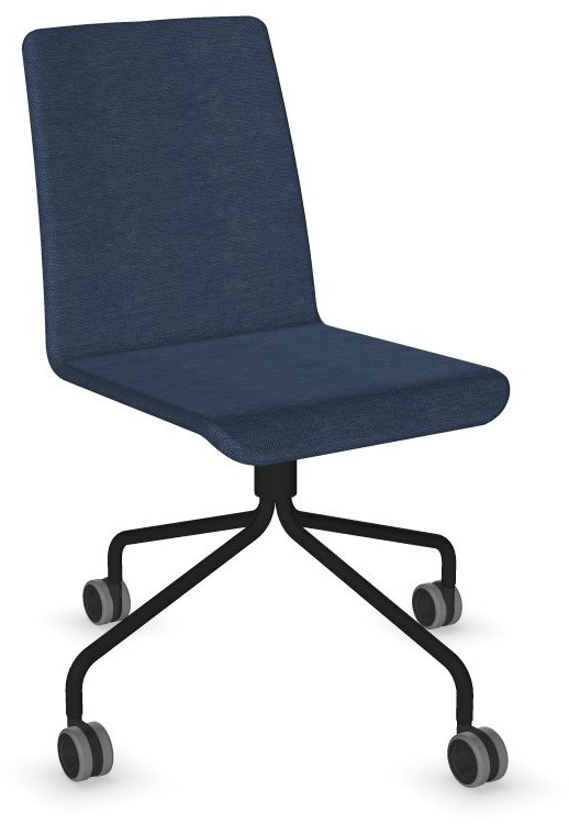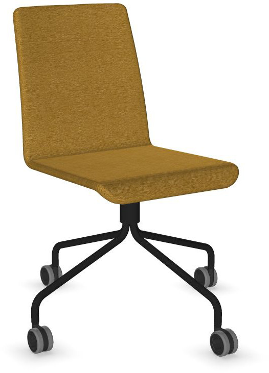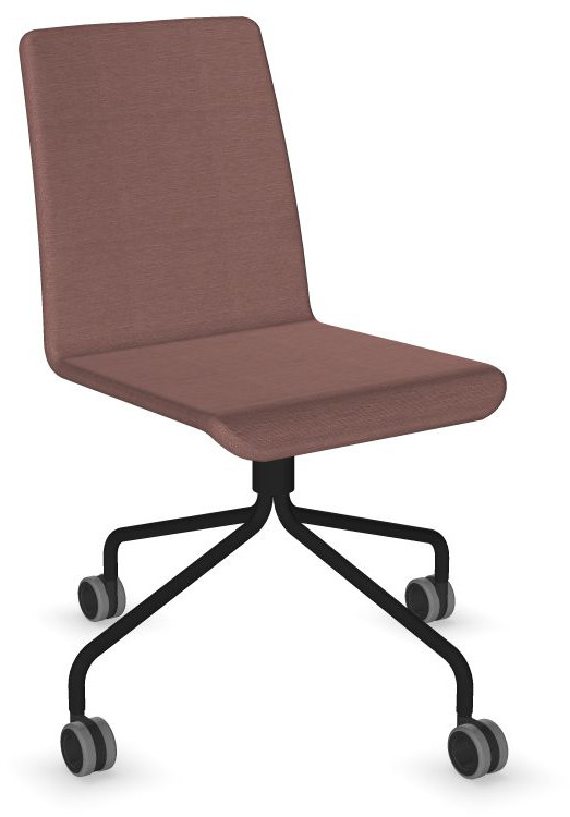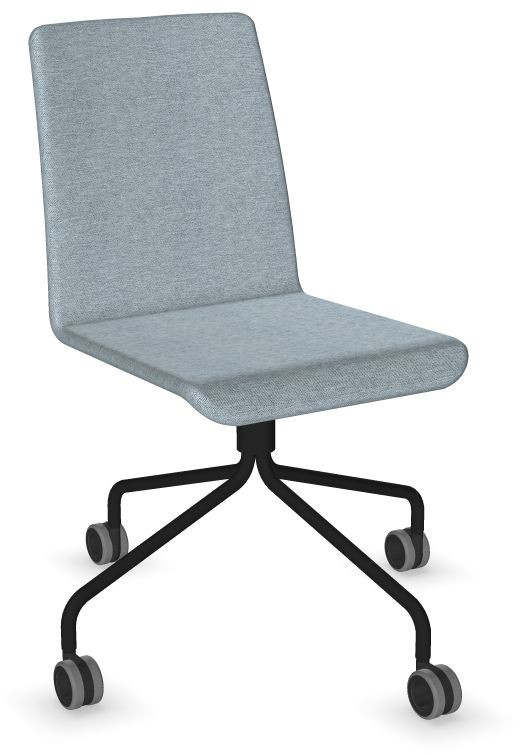 Siège Visiteur LUNA avec roulettes creuses. Base: pivotante, piètement en fil d’acier thermolaqué de type pyramidal avec roulettes. La hauteur de l’assise n’est pas réglable.