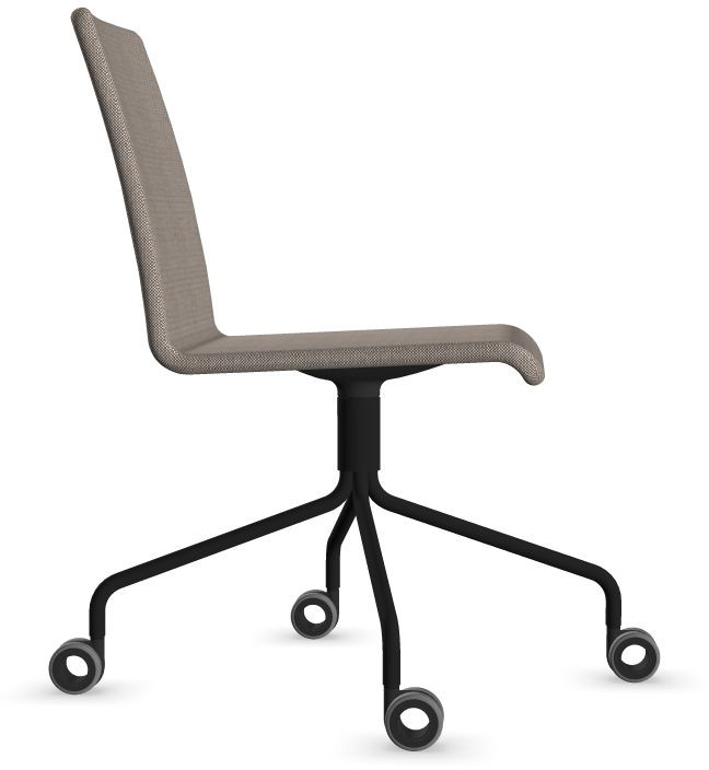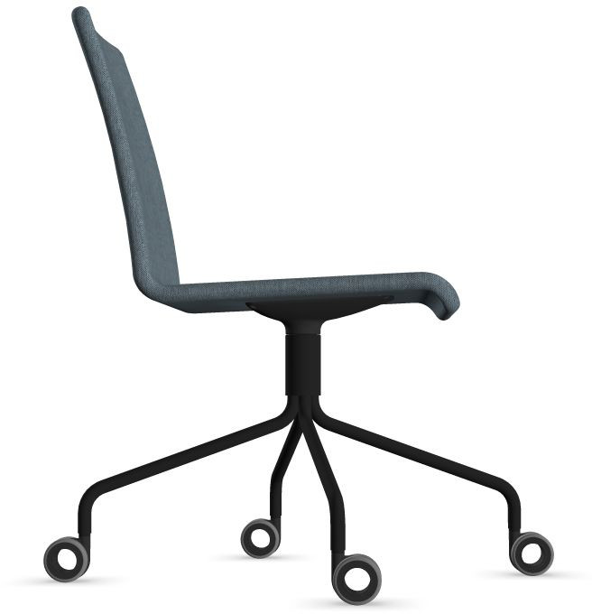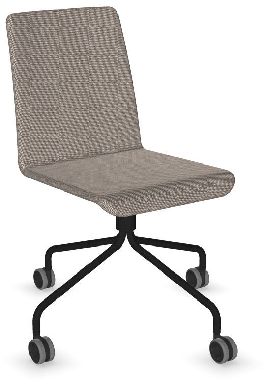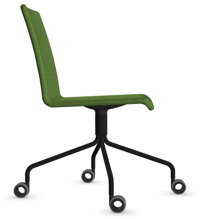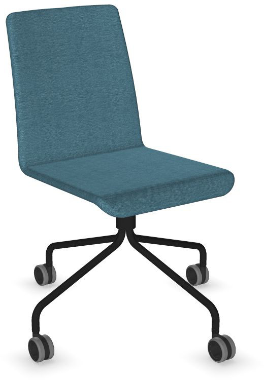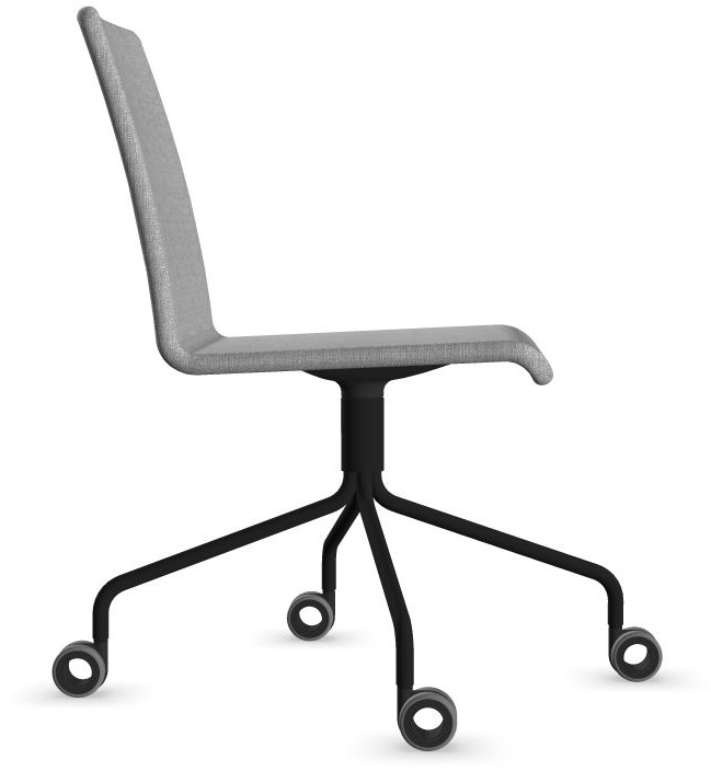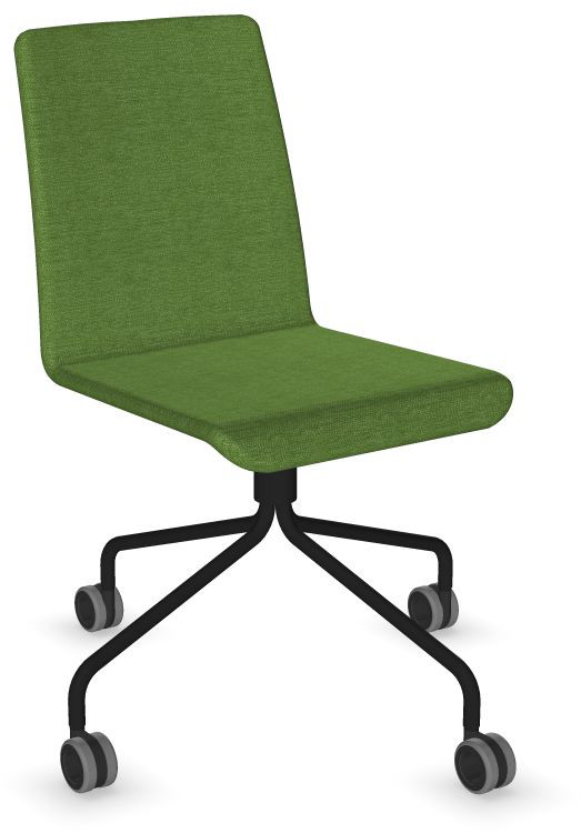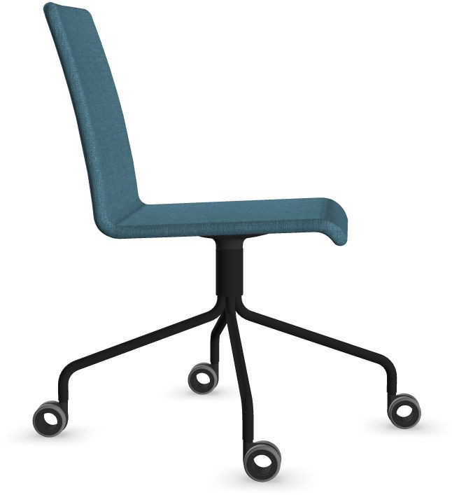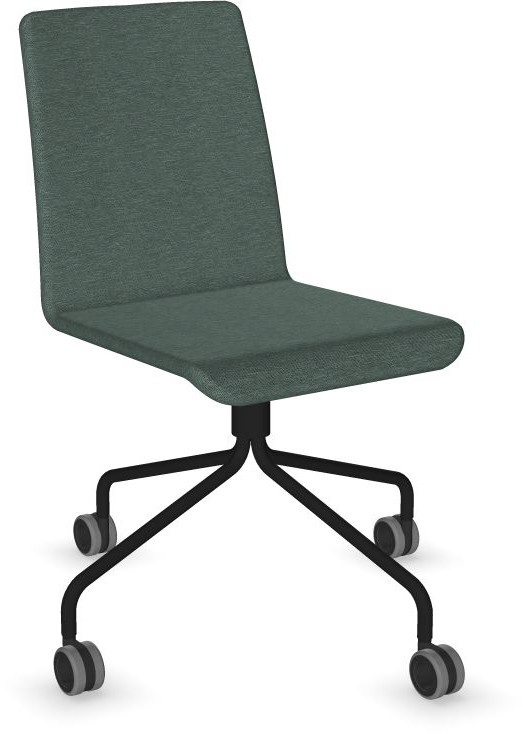 Siège Visiteur LUNA avec roulettes creuses. Base: pivotante, piètement en fil d’acier thermolaqué de type pyramidal avec roulettes. La hauteur de l’assise n’est pas réglable.