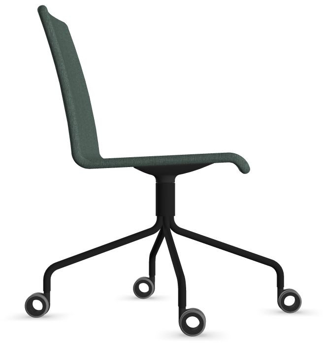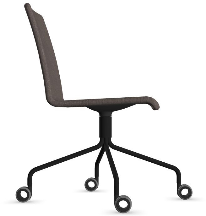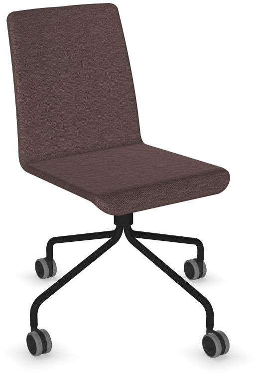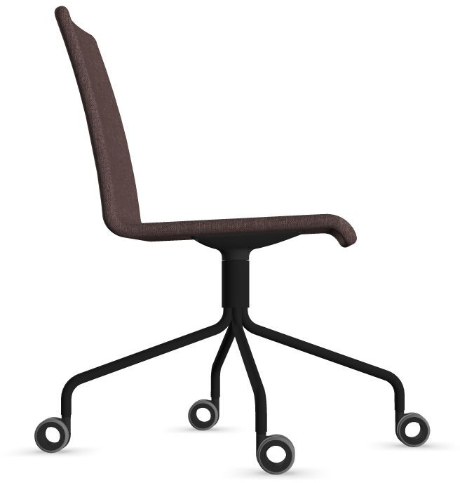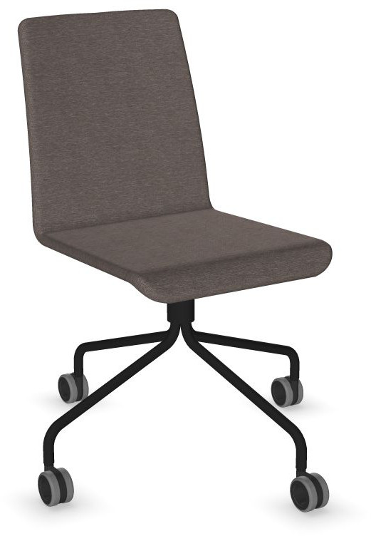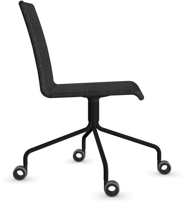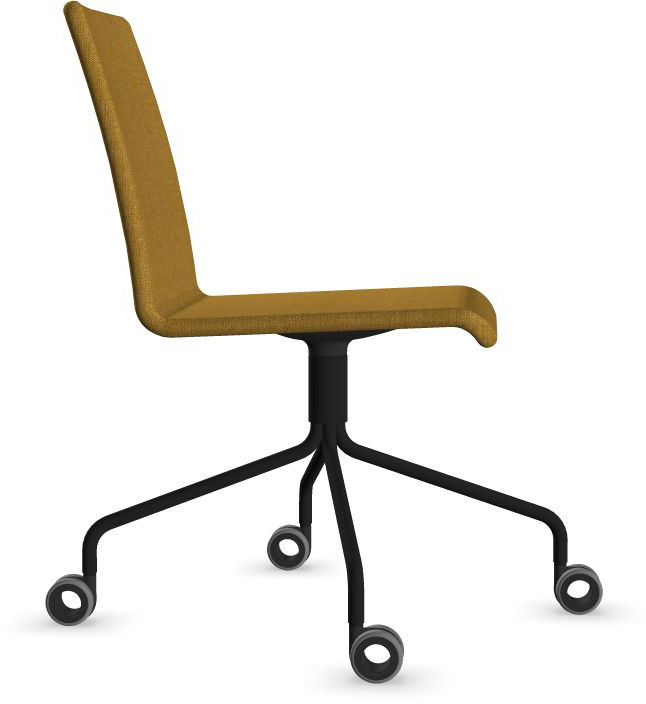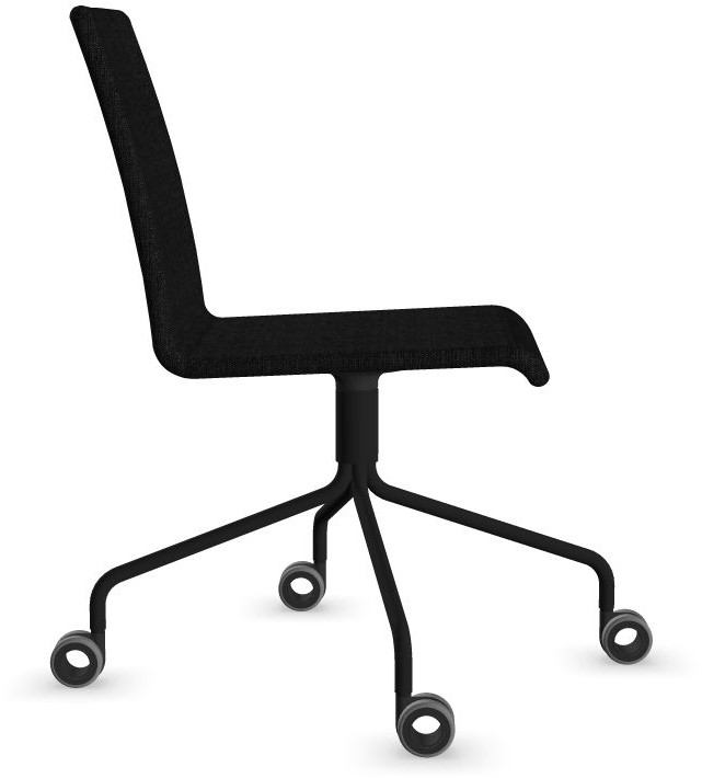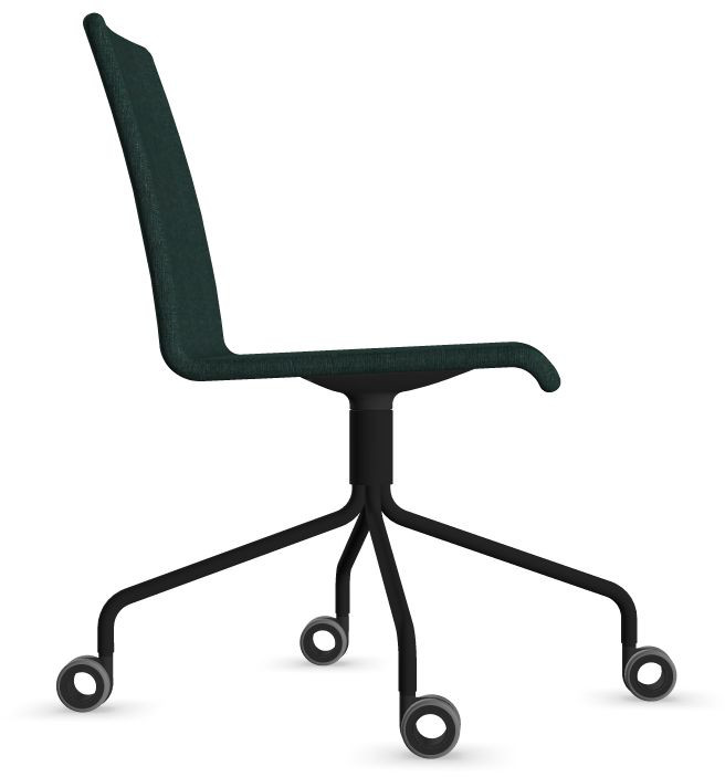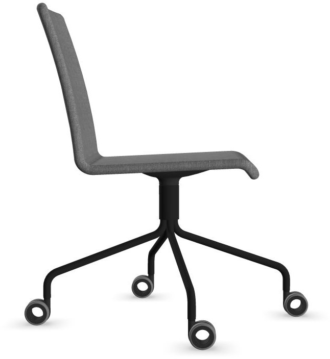 Siège Visiteur LUNA avec roulettes creuses. Base: pivotante, piètement en fil d’acier thermolaqué de type pyramidal avec roulettes. La hauteur de l’assise n’est pas réglable.